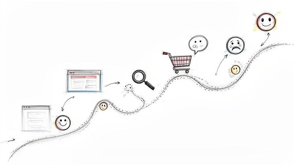 This visual narrative tracks every phase a user goes through, from becoming aware of your brand to becoming a loyal advocate. It’s not just about tracking clicks and conversions; it's about getting inside their head to understand the thoughts and feelings driving their actions. A good map shows you those "aha!" moments that create fans, but it also shines a light on the hidden friction points that make people give up and leave.